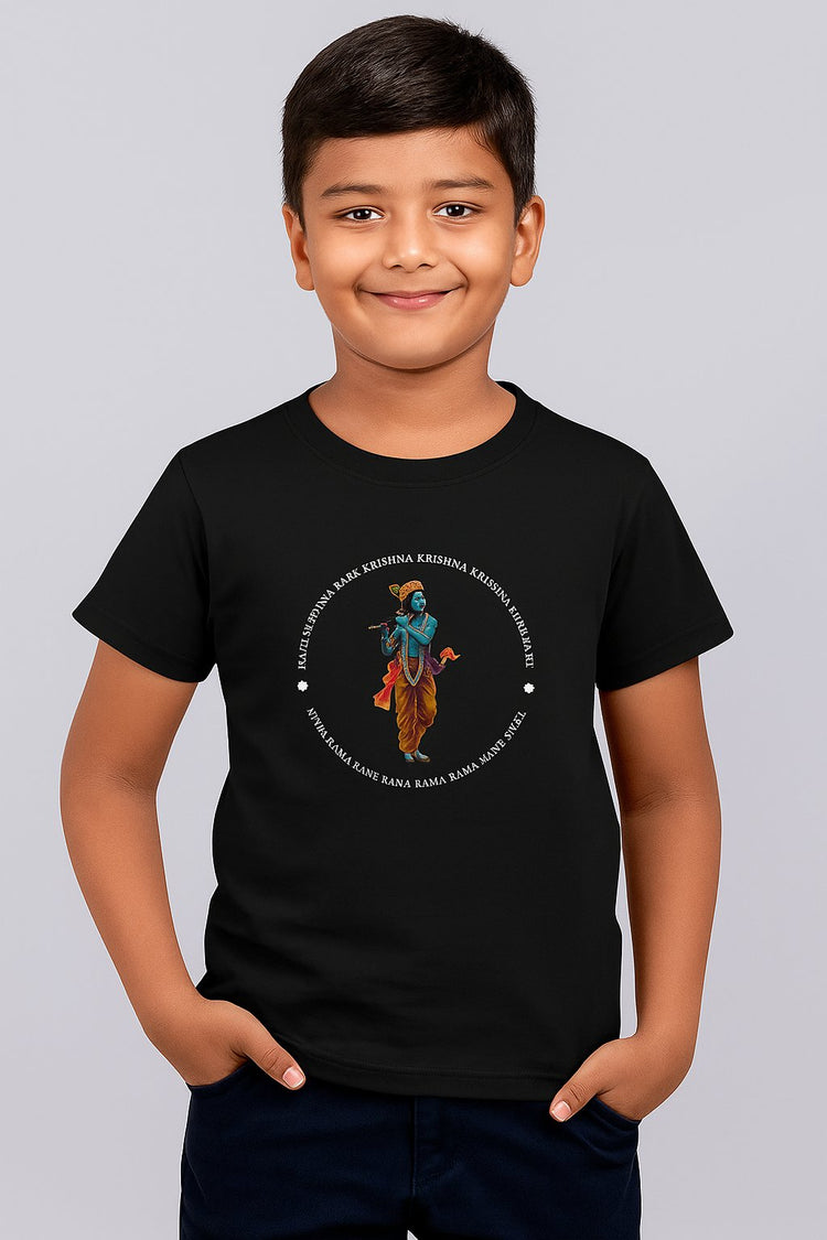 Hare Krishna Spiritual T-Shirt – Divine Lord Krishna Flute Design Boy's& Girls Crew Neck T-Shirt
